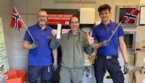 – Folk har skjønt at det er her de vinner de store summene, sier kjøpmann Jan-Tore Gråberget Bjørklund (i midten). Foto: Rema